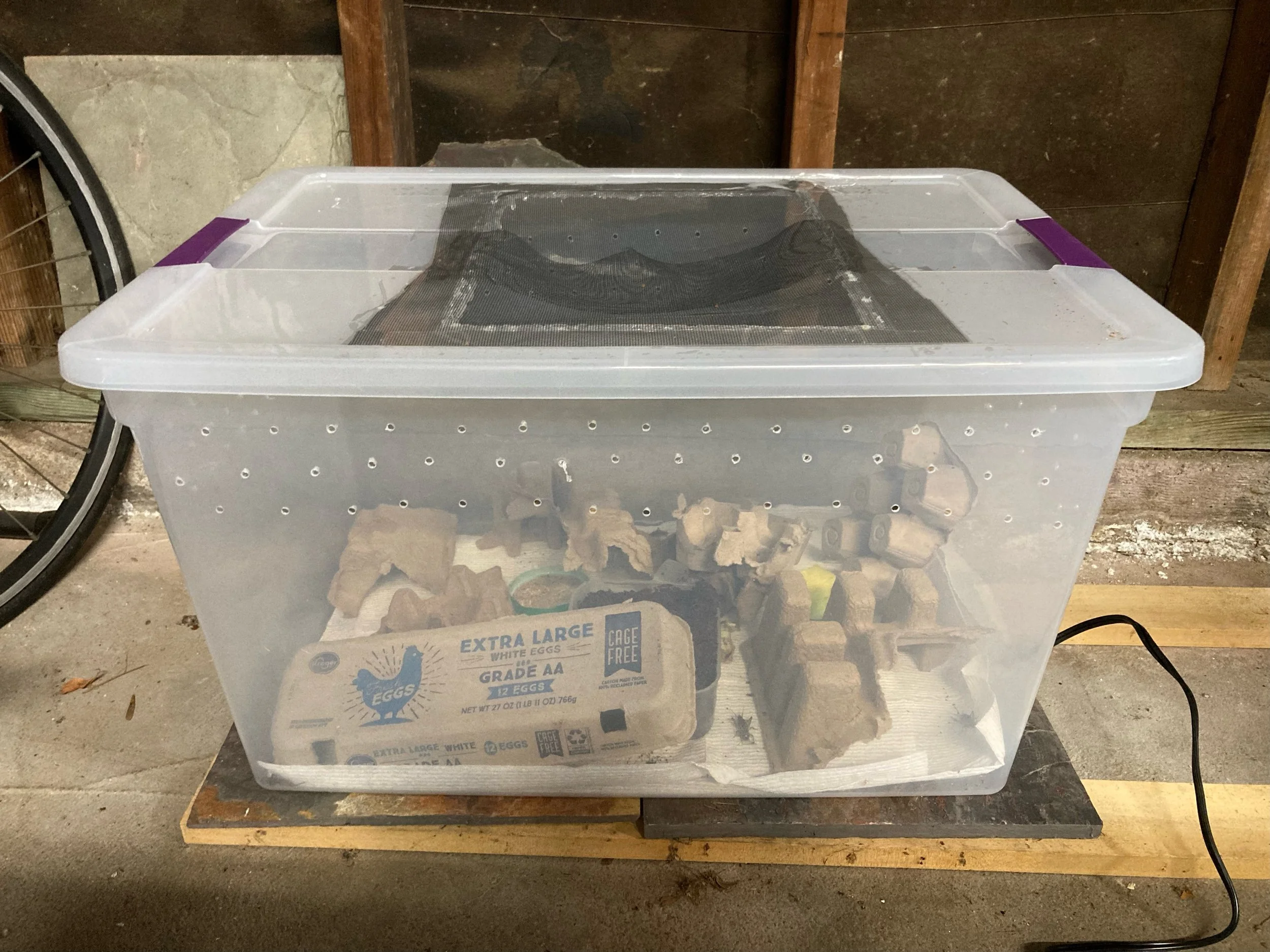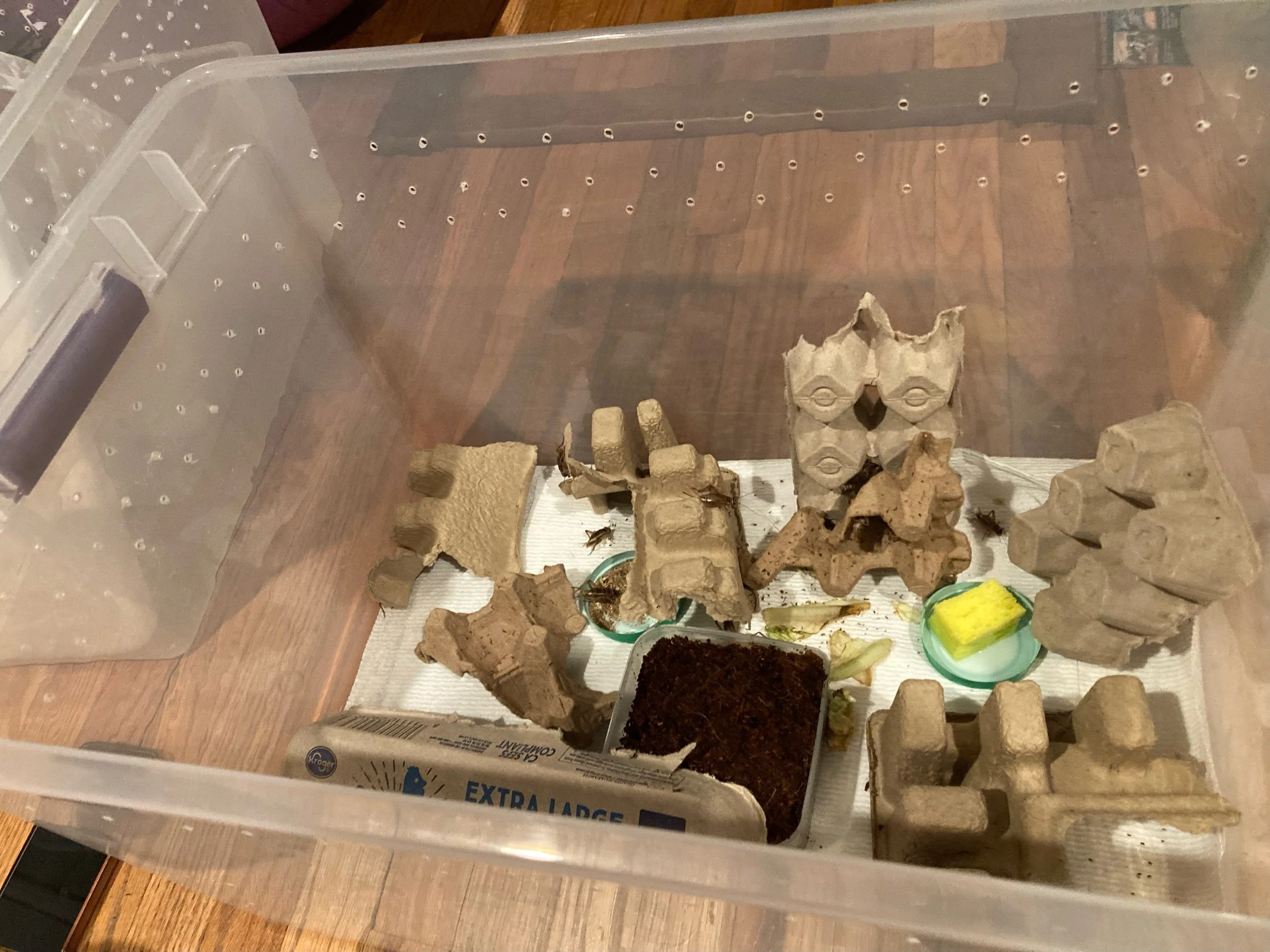 Make sure to throw in some pieces of egg crate (or egg cartons) so the crickets have places to climb and hide.